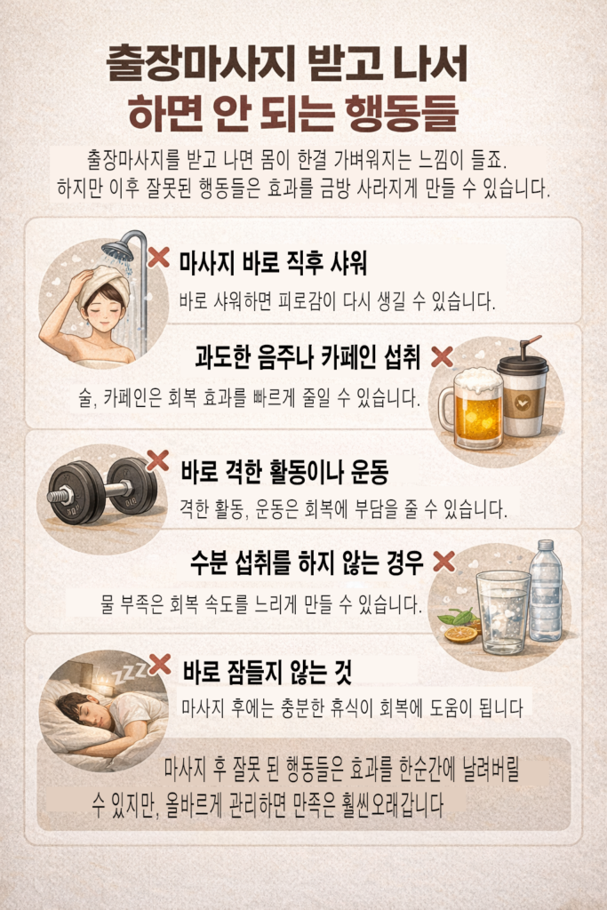 출장마사지 받고 나서 하면 안 되는 행동들